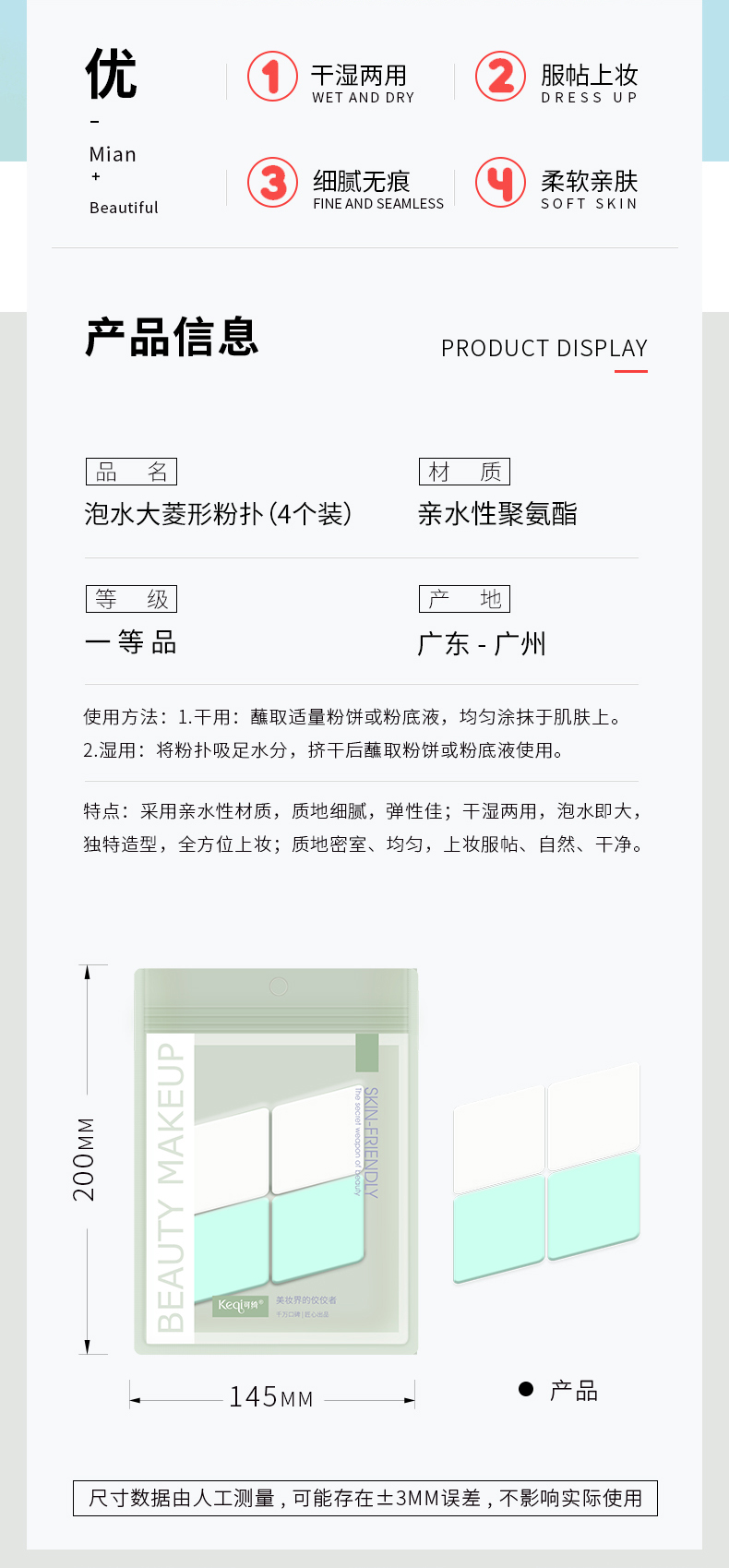 KQ1046 泡水大菱形粉扑(4个装)